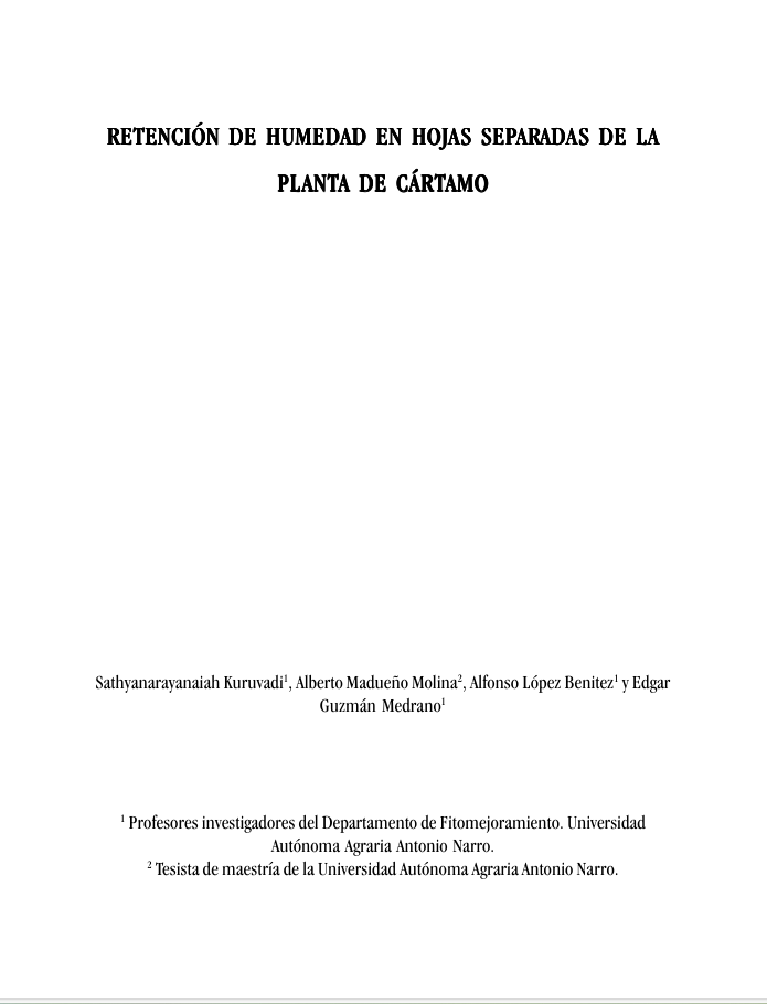 "Retención de humedad en hojas separadas de la planta de cártamo."